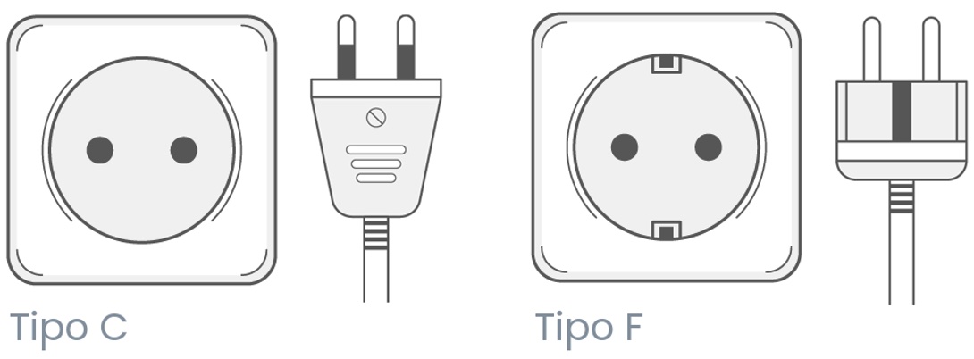 The electricity supply is 230 volts; with a frequency of 50 Hz, and the sockets are type C or type F (with grounding) as defined by European electrotechnical standards.